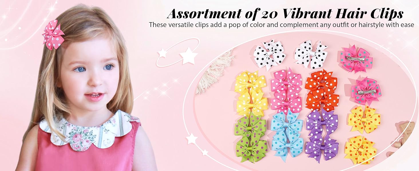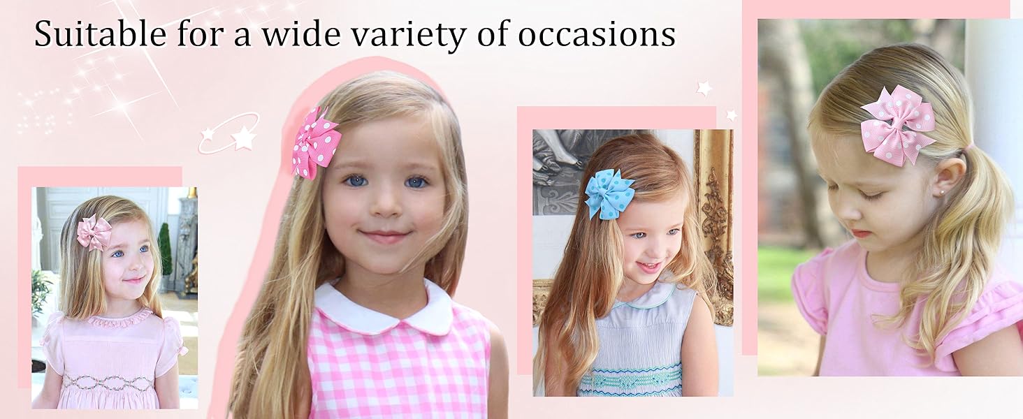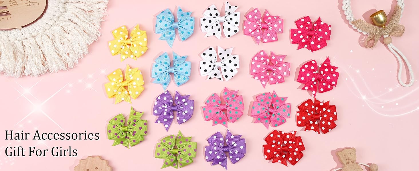 Each great-quality, 3 inch grosgrain bow is fastened to a reliable clip for all-day fun.