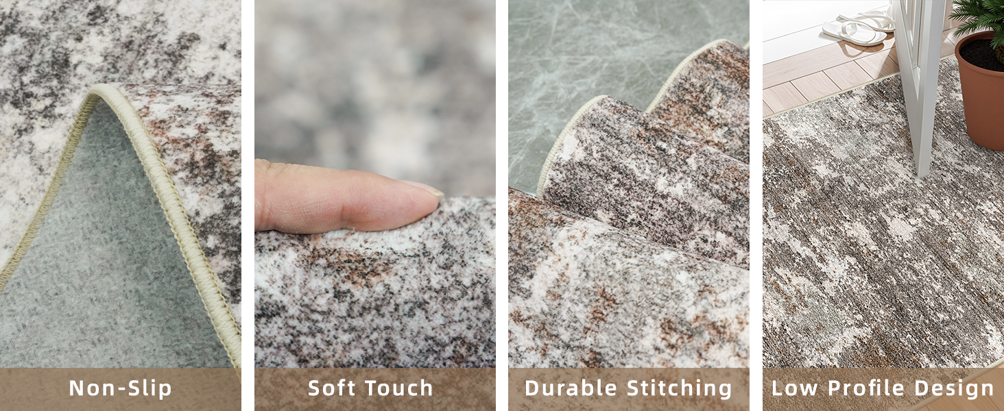 The surface is made of soft, faux cashmere, providing a luxurious feel, while the back features an upgraded, non-slip rubber to keep the rug in place.