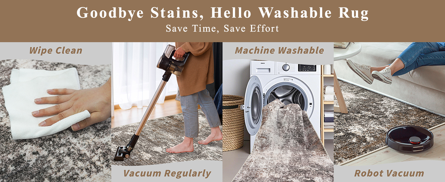 Yes! Our rugs are spill-resistant, and stains can be wiped away with a cloth. They're machine washable and vacuum-friendly for easy maintenance.