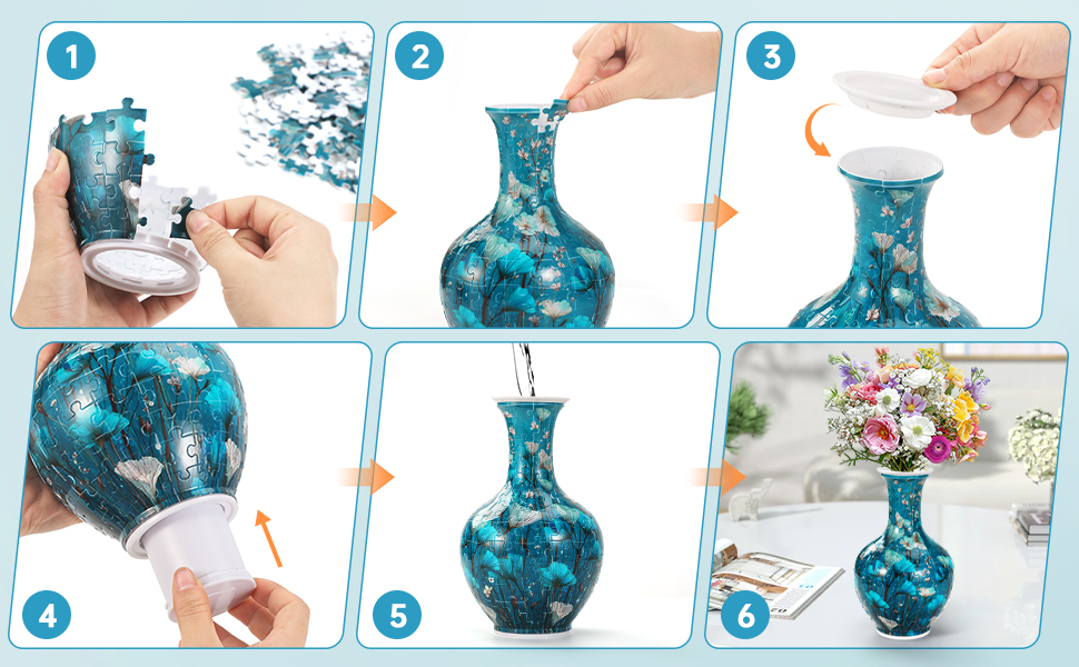 No glue, no mess, just satisfying clicks as your vase takes shape. Follow the simple steps to complete your 3D puzzle, insert the included waterproof liner, and fill it with fresh or faux flowers. In just minutes, you'll have a functional décor piece that’s as fun to make as it is to admire.