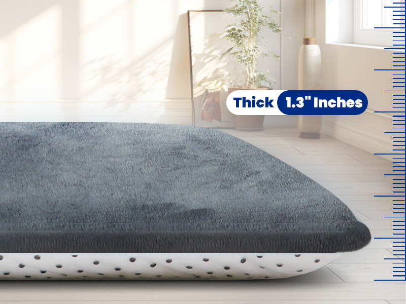 1.3" Thick Memory foam filled for anti-shock, noise reduction.extremely soft and bouncy – soft to touch, and perfect for walking or resting on, as well as good resilience and durable.